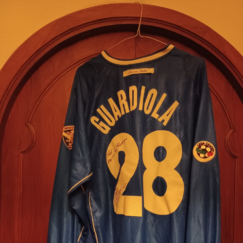 Maglia ufficiale del Brescia Calcio stagione 2001/2002, indossata da Pep Guardiola, leggenda del calcio spagnolo e attuale allenatore di fama mondiale.