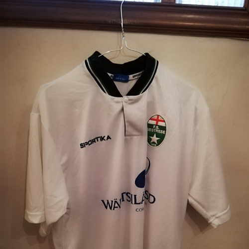 Maglia ufficiale della F.B.C. Sestrese Calcio 1919, una delle società più antiche e rappresentative della Liguria, utilizzata in gara (match worn o match issued) da un giocatore con il numero 15.